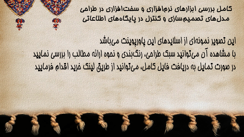 پاورپوینت کامل بررسی ابزارهای نرمافزاری و سختافزاری در طراحی مدلهای تصمیمسازی و کنترل در پایگاههای اطلاعاتی
