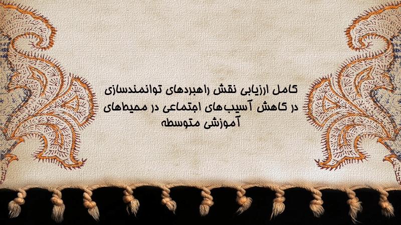 پاورپوینت کامل ارزیابی نقش راهبردهای توانمندسازی در کاهش آسیبهای اجتماعی در محیطهای آموزشی متوسطه
