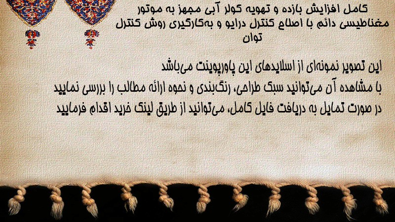 پاورپوینت کامل افزایش بازده و تهویه کولر آبی مجهز به موتور مغناطیسی دائم با اصلاح کنترل درایو و بهکارگیری روش کنترل توان