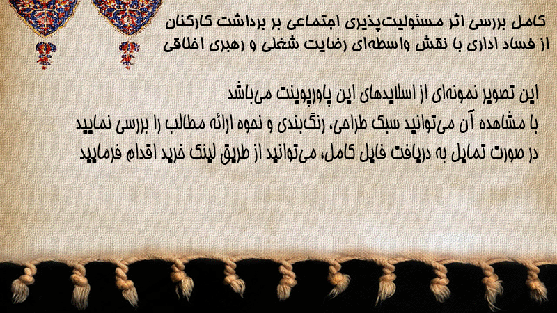 پاورپوینت کامل بررسی اثر مسئولیتپذیری اجتماعی بر برداشت کارکنان از فساد اداری با نقش واسطهای رضایت شغلی و رهبری اخلاقی