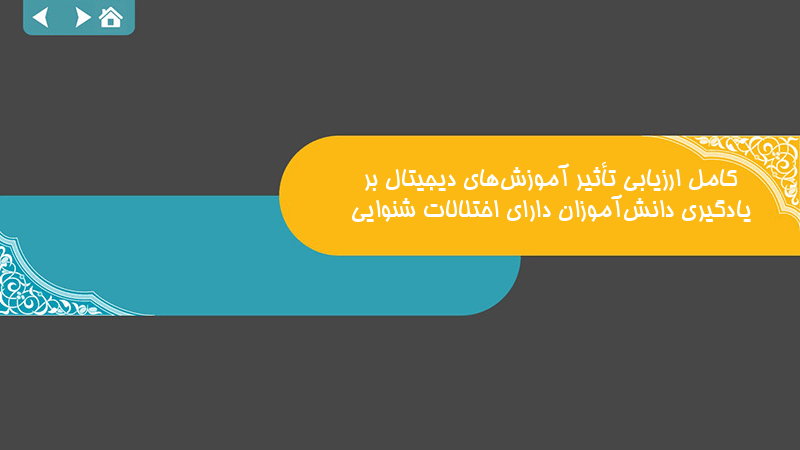 پاورپوینت کامل ارزیابی تأثیر آموزشهای دیجیتال بر یادگیری دانشآموزان دارای اختلالات شنوایی