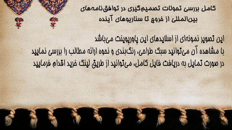 پاورپوینت کامل بررسی تحولات تصمیمگیری در توافقنامههای بینالمللی از خروج تا سناریوهای آینده