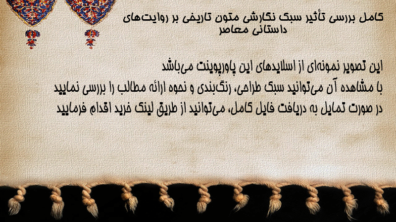 پاورپوینت کامل بررسی تأثیر سبک نگارشی متون تاریخی بر روایتهای داستانی معاصر