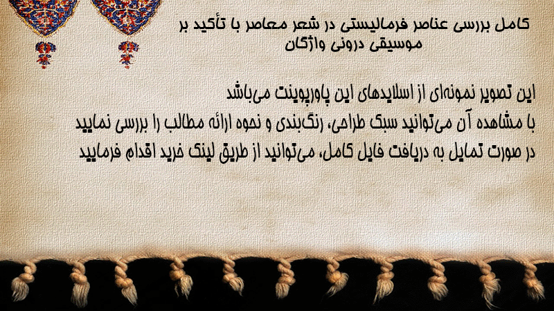 پاورپوینت کامل بررسی عناصر فرمالیستی در شعر معاصر با تأکید بر موسیقی درونی واژگان