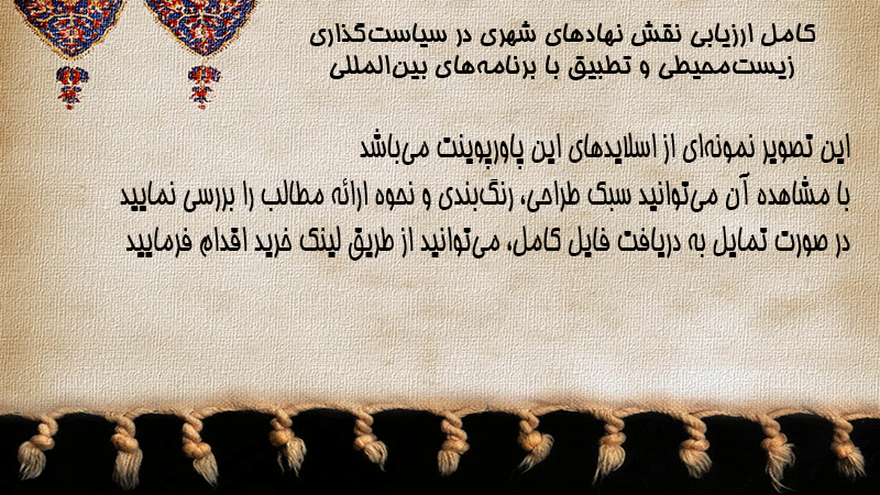 پاورپوینت کامل ارزیابی نقش نهادهای شهری در سیاستگذاری زیستمحیطی و تطبیق با برنامههای بینالمللی