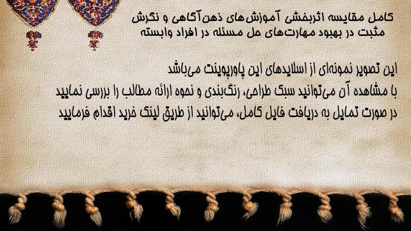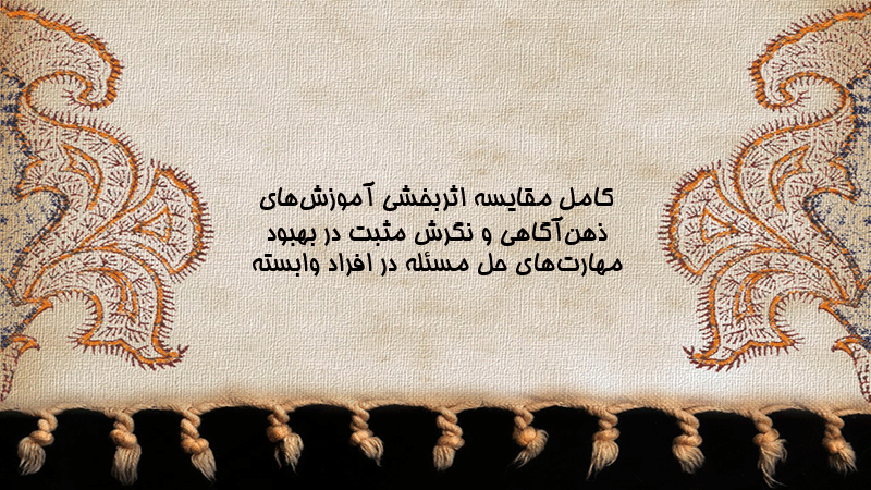 پاورپوینت کامل مقایسه اثربخشی آموزشهای ذهنآگاهی و نگرش مثبت در بهبود مهارتهای حل مسئله در افراد وابسته