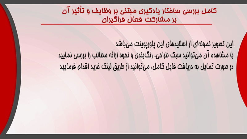 پاورپوینت کامل بررسی ساختار یادگیری مبتنی بر وظایف و تأثیر آن بر مشارکت فعال فراگیران