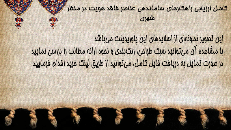پاورپوینت کامل ارزیابی راهکارهای ساماندهی عناصر فاقد هویت در منظر شهری