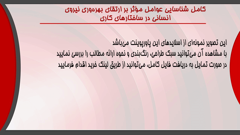 پاورپوینت کامل شناسایی عوامل مؤثر بر ارتقای بهرهوری نیروی انسانی در ساختارهای کاری