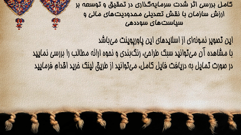 پاورپوینت کامل بررسی اثر شدت سرمایهگذاری در تحقیق و توسعه بر ارزش سازمان با نقش تعدیلی محدودیتهای مالی و سیاستهای سوددهی