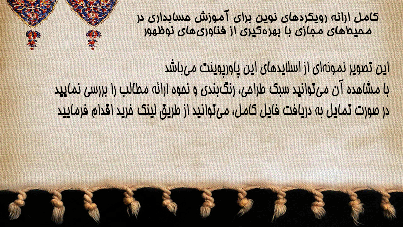 پاورپوینت کامل ارائه رویکردهای نوین برای آموزش حسابداری در محیطهای مجازی با بهرهگیری از فناوریهای نوظهور
