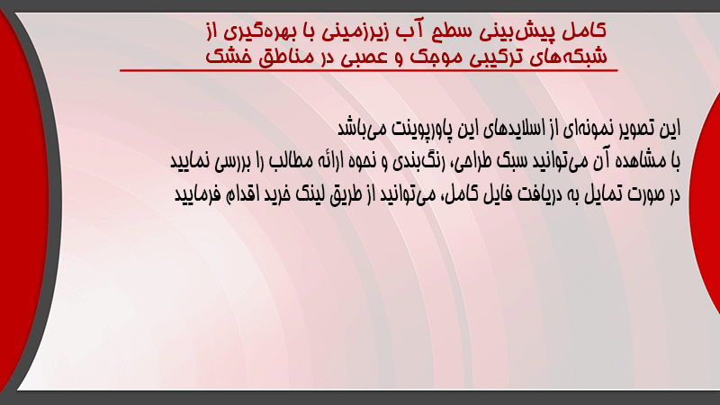 پاورپوینت کامل پیشبینی سطح آب زیرزمینی با بهرهگیری از شبکههای ترکیبی موجک و عصبی در مناطق خشک