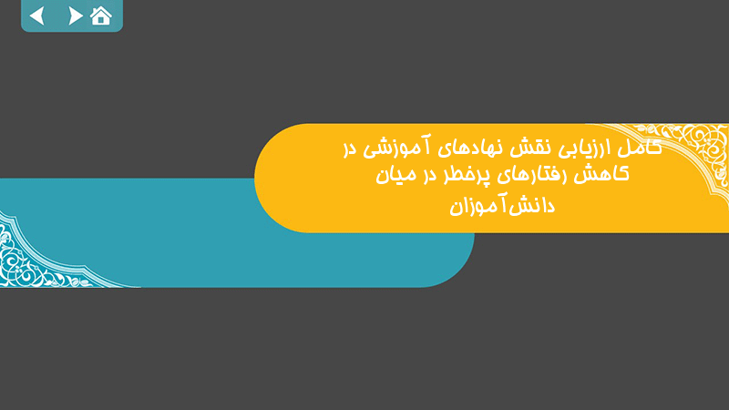 پاورپوینت کامل ارزیابی نقش نهادهای آموزشی در کاهش رفتارهای پرخطر در میان دانشآموزان