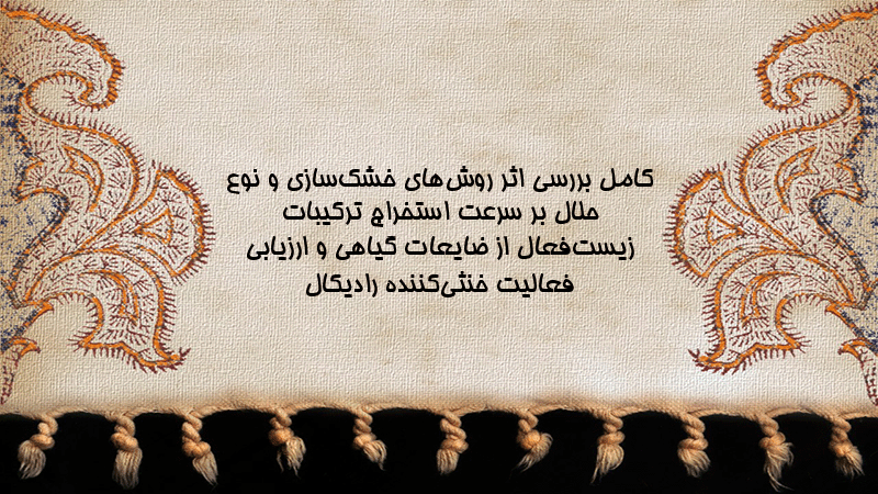 پاورپوینت کامل بررسی اثر روشهای خشکسازی و نوع حلال بر سرعت استخراج ترکیبات زیستفعال از ضایعات گیاهی و ارزیابی فعالیت خنثیکننده رادیکال