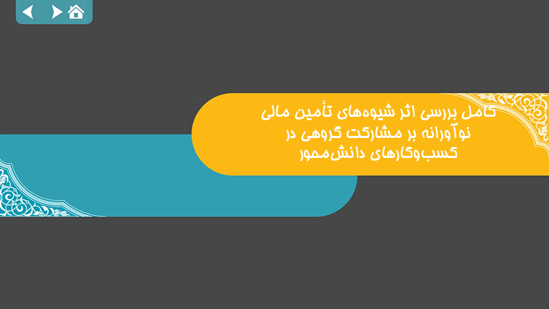 پاورپوینت کامل بررسی اثر شیوههای تأمین مالی نوآورانه بر مشارکت گروهی در کسبوکارهای دانشمحور