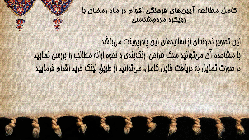 پاورپوینت کامل مطالعه آیینهای فرهنگی اقوام در ماه رمضان با رویکرد مردمشناسی