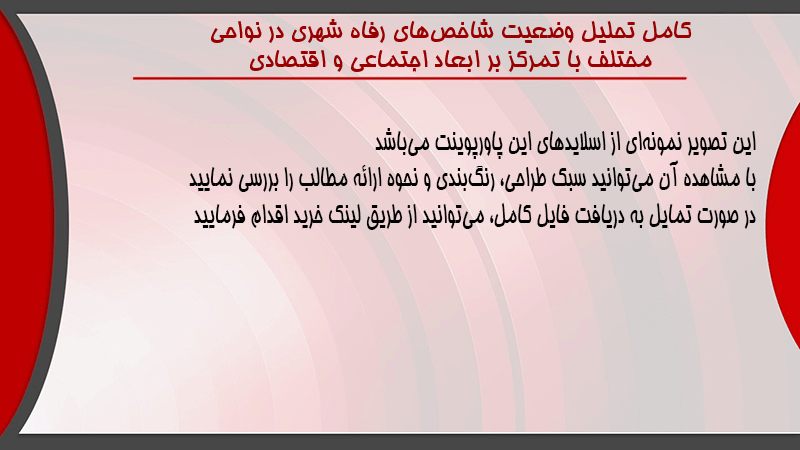 پاورپوینت کامل تحلیل وضعیت شاخصهای رفاه شهری در نواحی مختلف با تمرکز بر ابعاد اجتماعی و اقتصادی
