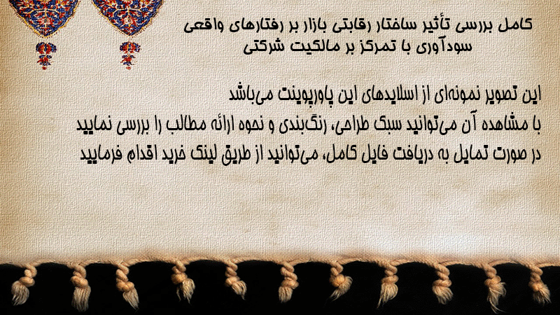 پاورپوینت کامل بررسی تأثیر ساختار رقابتی بازار بر رفتارهای واقعی سودآوری با تمرکز بر مالکیت شرکتی