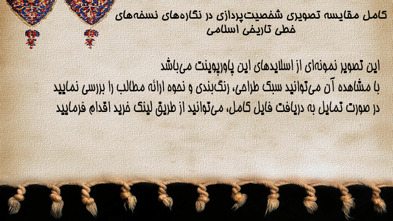 پاورپوینت کامل مقایسه تصویری شخصیتپردازی در نگارههای نسخههای خطی تاریخی اسلامی