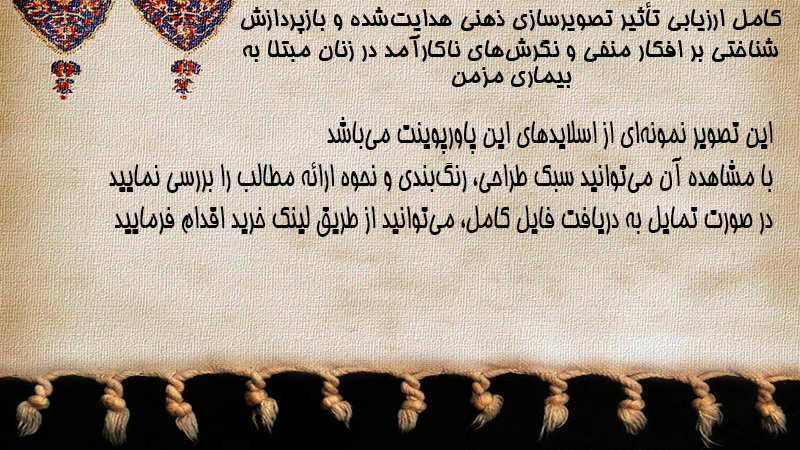 پاورپوینت کامل ارزیابی تأثیر تصویرسازی ذهنی هدایتشده و بازپردازش شناختی بر افکار منفی و نگرشهای ناکارآمد در زنان مبتلا به بیماری مزمن