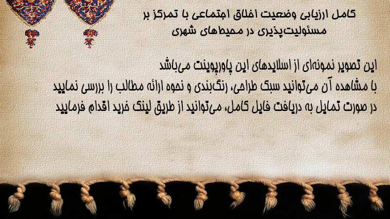 پاورپوینت کامل ارزیابی وضعیت اخلاق اجتماعی با تمرکز بر مسئولیتپذیری در محیطهای شهری