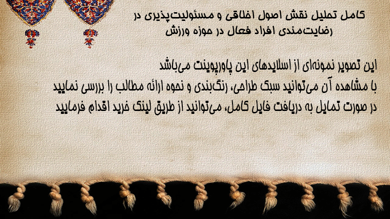 پاورپوینت کامل تحلیل نقش اصول اخلاقی و مسئولیتپذیری در رضایتمندی افراد فعال در حوزه ورزش