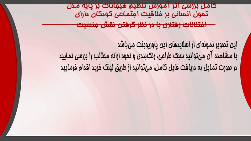 پاورپوینت کامل بررسی اثر آموزش تنظیم هیجانات بر پایه مدل تحول انسانی بر خلاقیت اجتماعی کودکان دارای اختلالات رفتاری با در نظر گرفتن نقش جنسیت