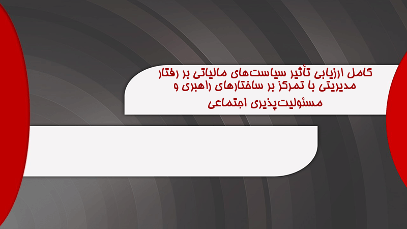 پاورپوینت کامل ارزیابی تأثیر سیاستهای مالیاتی بر رفتار مدیریتی با تمرکز بر ساختارهای راهبری و مسئولیتپذیری اجتماعی