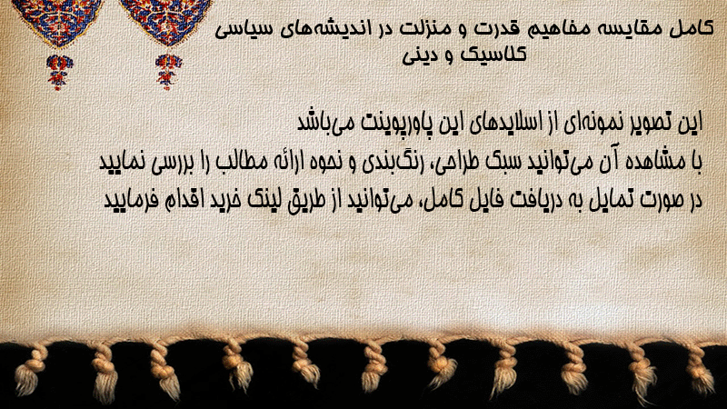 پاورپوینت کامل مقایسه مفاهیم قدرت و منزلت در اندیشههای سیاسی کلاسیک و دینی
