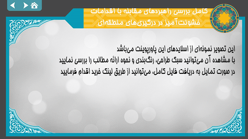 پاورپوینت کامل بررسی راهبردهای مقابله با اقدامات خشونتآمیز در درگیریهای منطقهای
