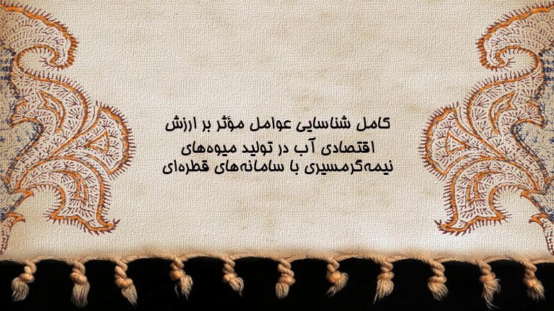 پاورپوینت کامل شناسایی عوامل مؤثر بر ارزش اقتصادی آب در تولید میوههای نیمهگرمسیری با سامانههای قطرهای