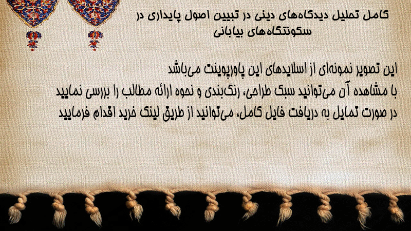 پاورپوینت کامل تحلیل دیدگاههای دینی در تبیین اصول پایداری در سکونتگاههای بیابانی