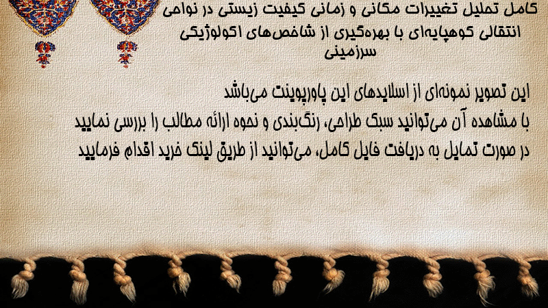 پاورپوینت کامل تحلیل تغییرات مکانی و زمانی کیفیت زیستی در نواحی انتقالی کوهپایهای با بهرهگیری از شاخصهای اکولوژیکی سرزمینی