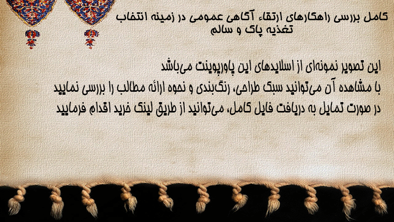 پاورپوینت کامل بررسی راهکارهای ارتقاء آگاهی عمومی در زمینه انتخاب تغذیه پاک و سالم