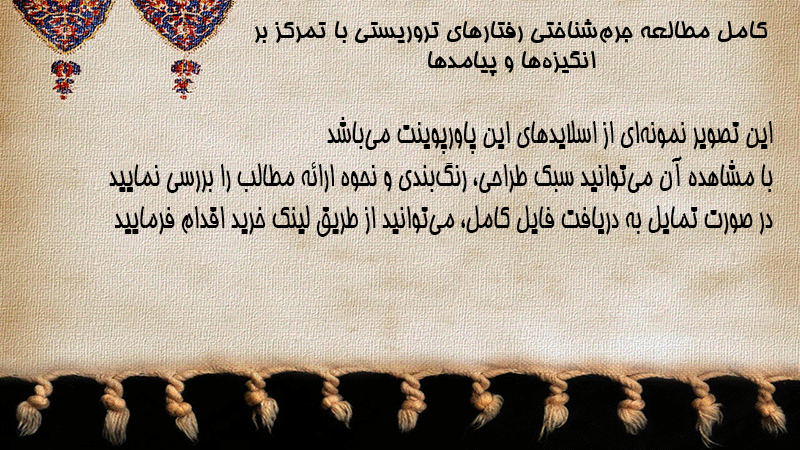 پاورپوینت کامل مطالعه جرمشناختی رفتارهای تروریستی با تمرکز بر انگیزهها و پیامدها