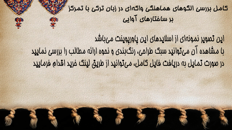 پاورپوینت کامل بررسی الگوهای هماهنگی واکهای در زبان ترکی با تمرکز بر ساختارهای آوایی